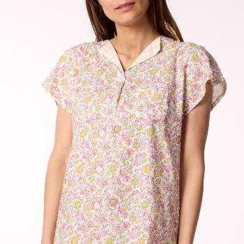 Collection "Paty" liquette de nuit en coton fin imprimé petites fleurs multicolores, manches très courtes sur le haut du bras et col V avec revers pour ce modèle tout confort