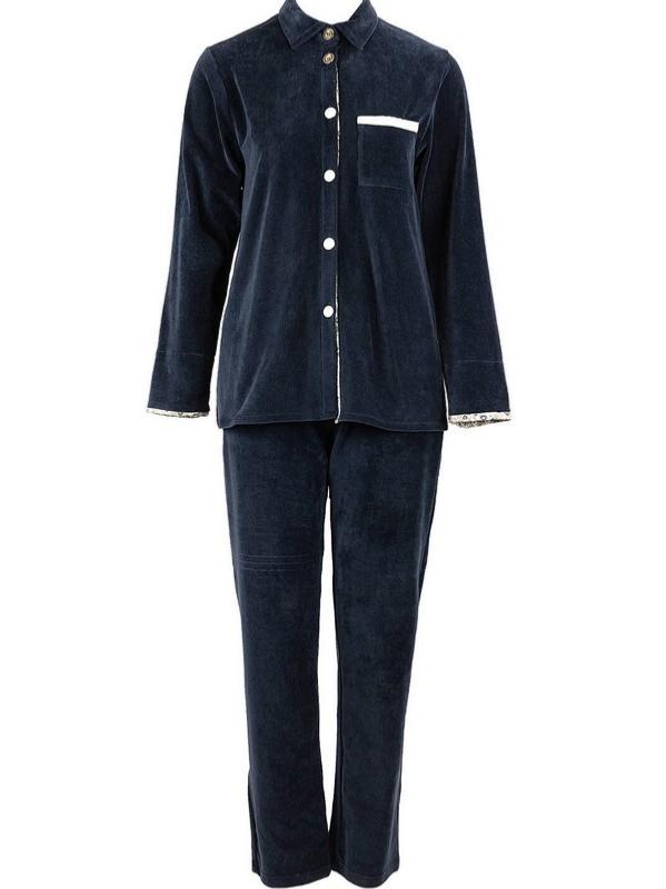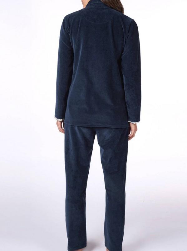 Modèle de pyjama d'intérieur en velours côtelé marine collection Yani de chez Canat.