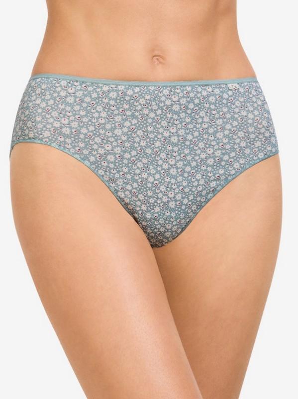 Collection "32072" lot de 2 slips en tissu coton imprimé de petites fleurs blanches sur fond vert, logo cousu en lettre brodée, fond doublé tissu coton.