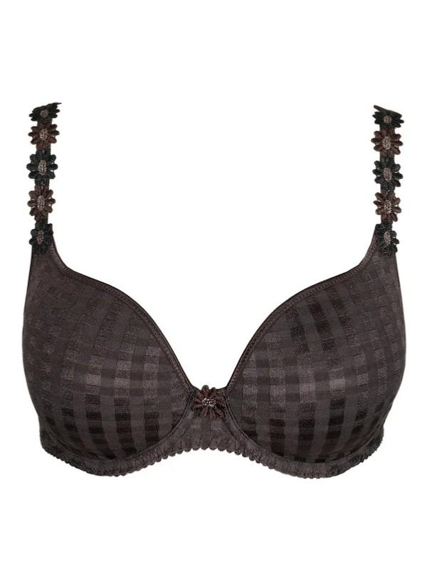Collection "Avero" soutien-gorge à armatures forme coeur avec bonnets à coques intégrées pour un galbe poitrine naturellement arrondi, travaillé ici en coloris chocolat chaud et lumineux.