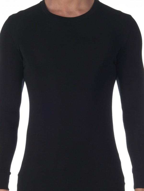 Tee-shirt pour homme col rond et manches longues. En laine et soie. Maille plate. Les poignets sont marqués et ajustés. La forme est droite. Les modèles pour homme sont comme pour la collection féminine, ajustés sans être moulants. Ce tee-shirt tient chaud et laisse le corps respirer, grâce à son mélange laine et soie. Idéal pour l'hiver.